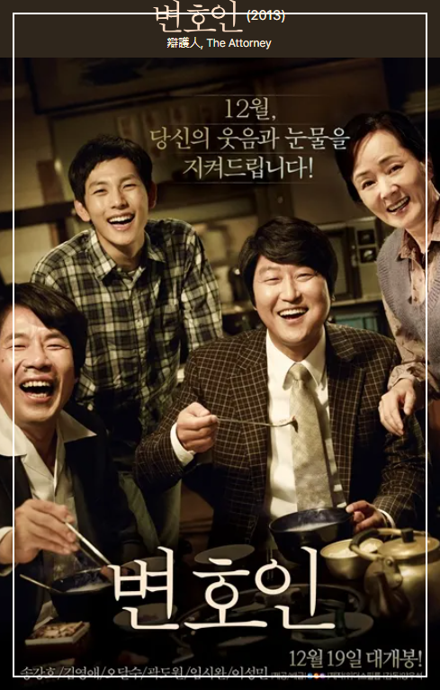 2013년 12월에 개봉한 양우석 감독의 영화 "변호인"은 1980년대 부산에서  활동했던 한 인권 변호사의 이야기를 다룬 영화로 법무법인 부산 소속이었던 故노무현 전 대통령과 그가 변호했던 부림사건에서 모티브를 따왔습니다. 1980년대 한국의 정치적 혼란을 배경으로 한 이 영화는 강력한 스토리텔링, 감정적 깊이, 역사적 중요성으로 상당한 주목을 받았습니다. 영화 "변호인"의 생생한 역사적 배경 및 줄거리와 전반적인 리뷰에 대해서 작성해 보겠습니다.