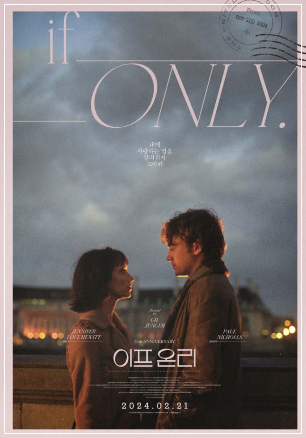 2004년 10월 개봉, 2017년 11월, 2024년 02월 재개봉하고 실관람객 평점 9.07를 받은 길 정거 감독의 "이프 온리"는 진정한 사랑이 무엇인지 마음을 다해 사랑한다는 것이 무엇인지 생각해 보게 되는 영화입니다. 영화 "이프 온리"의 줄거리와 캐릭터 및 총평에 대해서 이야기 나눠보겠습니다.