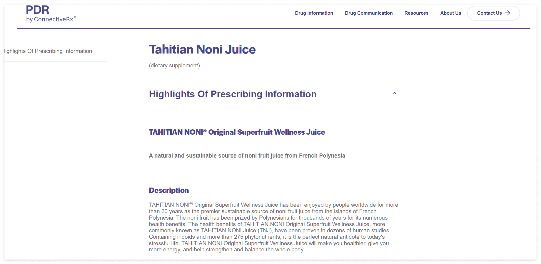 PDR 등재되어 있는 타이티안 노니에 대해서 정리해봤습니다.