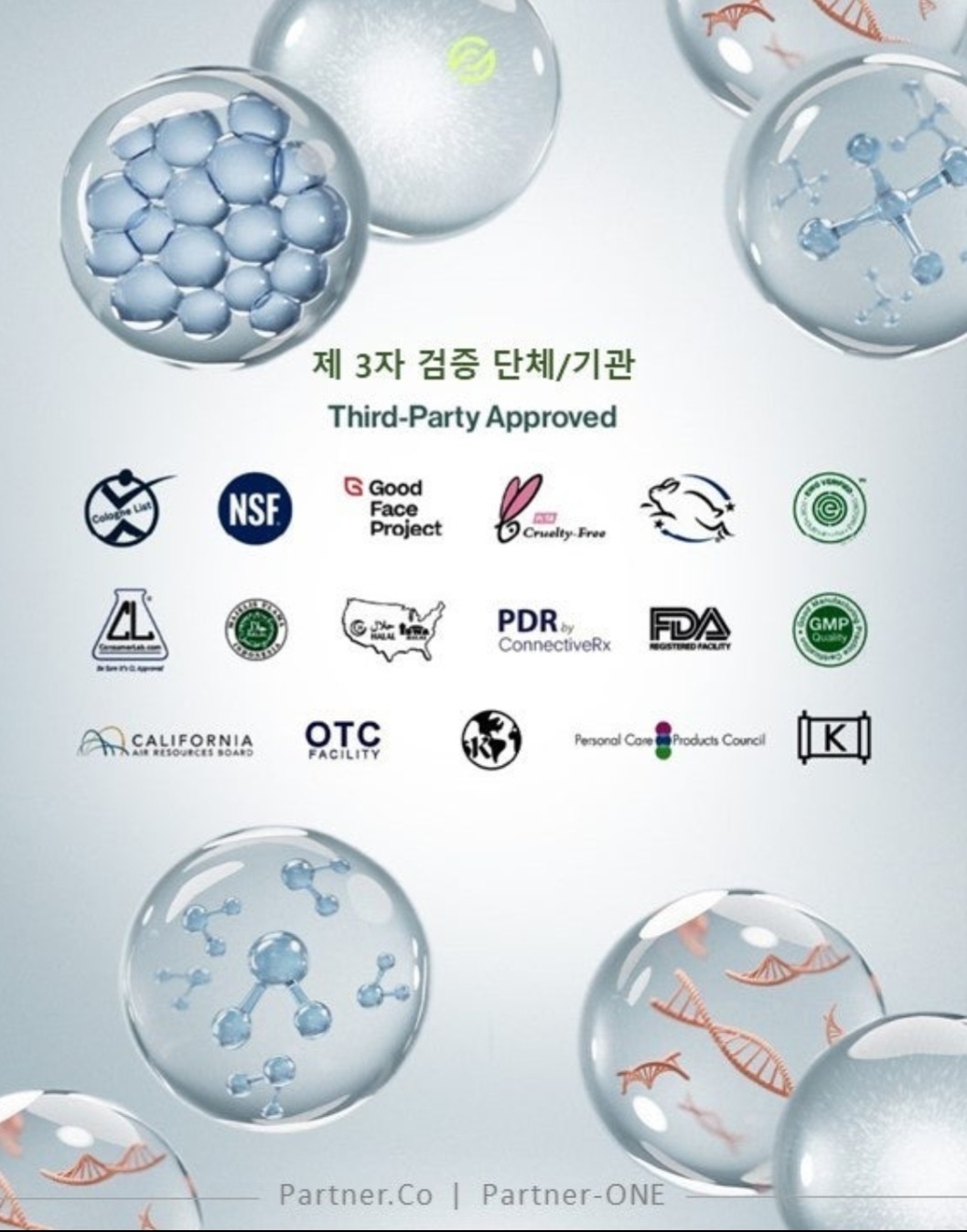 - 제3자 테스트 – 외부 기관을 통해 제품의 성분과 기대 효능을 추가로 검증합니다.